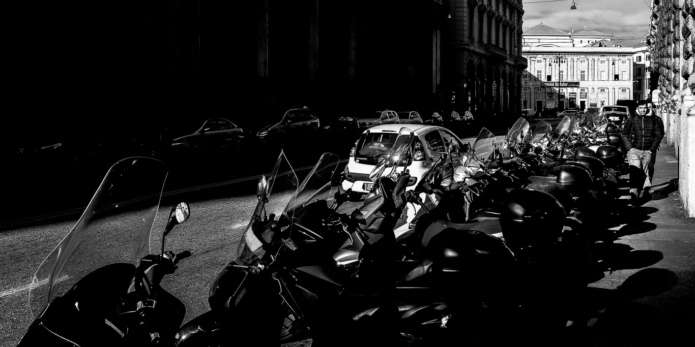 Un contradditorio che denuda la città, grigio teatro della rappresentazione luce e ombra.